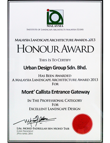 ILAM Honour Award (2013) for Mont' Callista Entrance Gateway