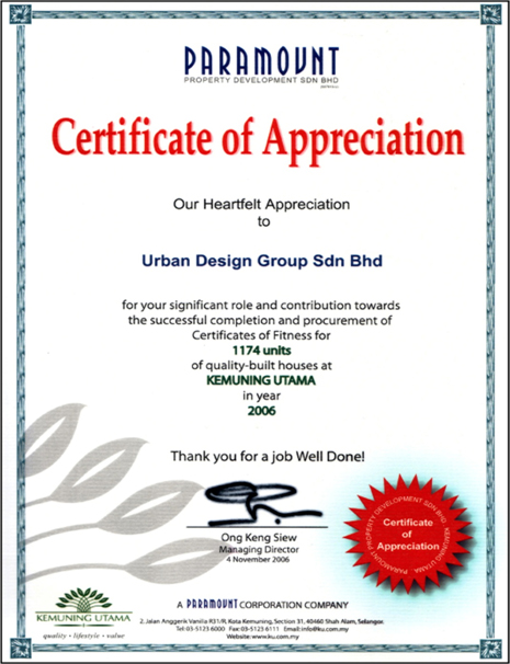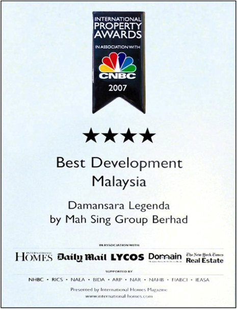 Bronze Medal for Bukit Kiara' Pool Design (Kuala Lumpur)
